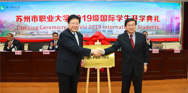 On October 30th, Suzhou Vocational University held the opening ceremony of the 2019 international students. George Wyne Adams, CEO of Merseta (South Africa), Dr. Lu Zhilei, director of CCIEEC (South Africa), Yang Jun, director of Human Resources Department of Hengtong Group Co., Ltd., Niu Xuelin, secretary of the CPC SVU Committee, Cao Yumin, president of SVU, and the leaders from related university departments, teacher representatives and all 2019 international students attended the ceremony, which was hosted by Zhang Jun, director of the Foreign Affairs Office.