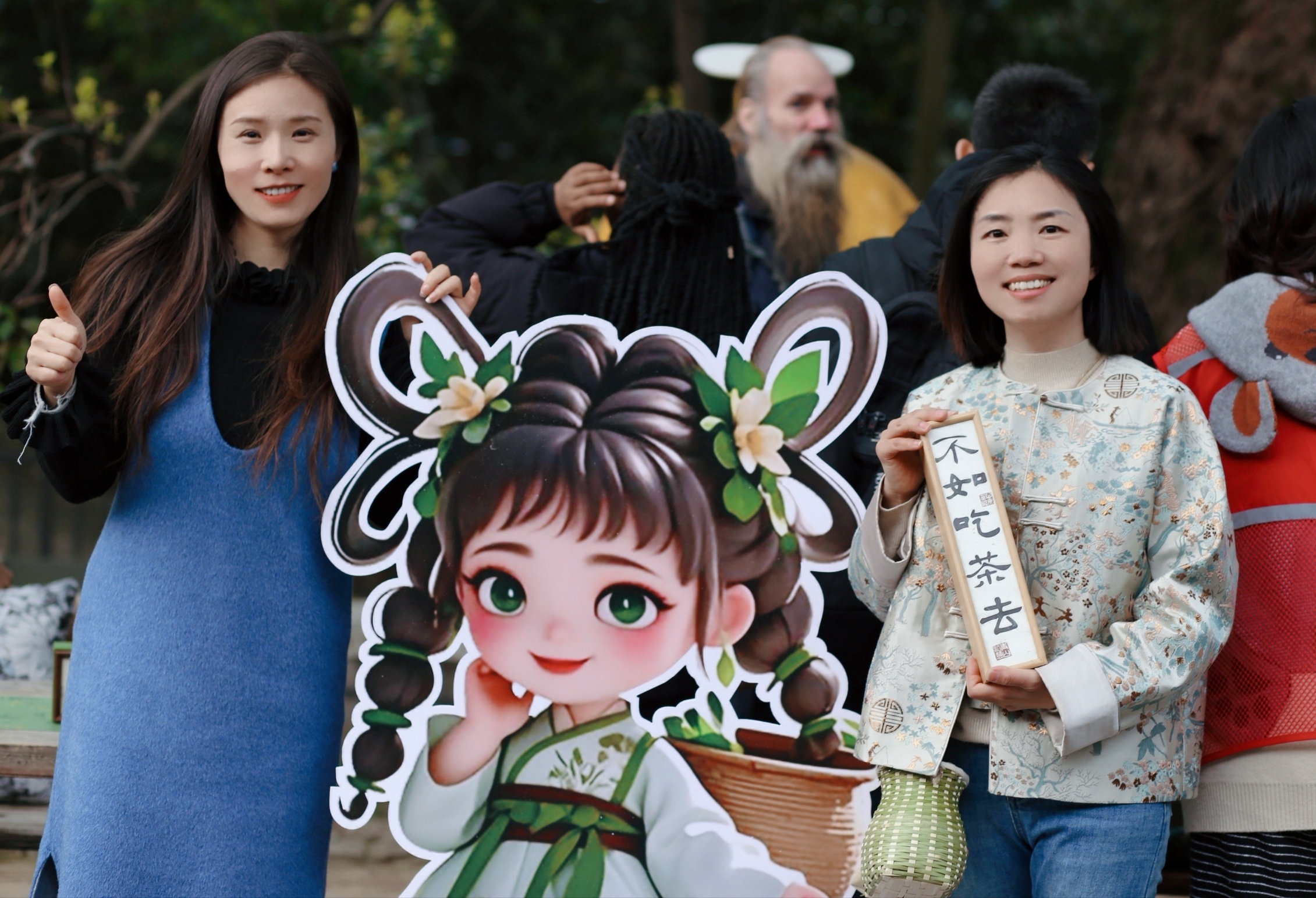 赵老师带领学生走进田间地头,结合当地绿色发展,开发生态研学线路,组建“四季金庭”研学团队,打造碧螺春、枇杷、青梅、杨梅等金庭特色农产品IP形象文创产品,增强游客文化体验,拓展消费新场景,塑造品牌形象,促进文化创新,此外,精心设计“一片茶叶的旅程”双语研学线路,构建“茶园探秘”“非遗制茶”“茶道美学”三大板块,将知识与体验巧妙融合。学生用中英双语进行讲解,累计接待300余名中外游客,特色双语研学基地的名号也越来越响。