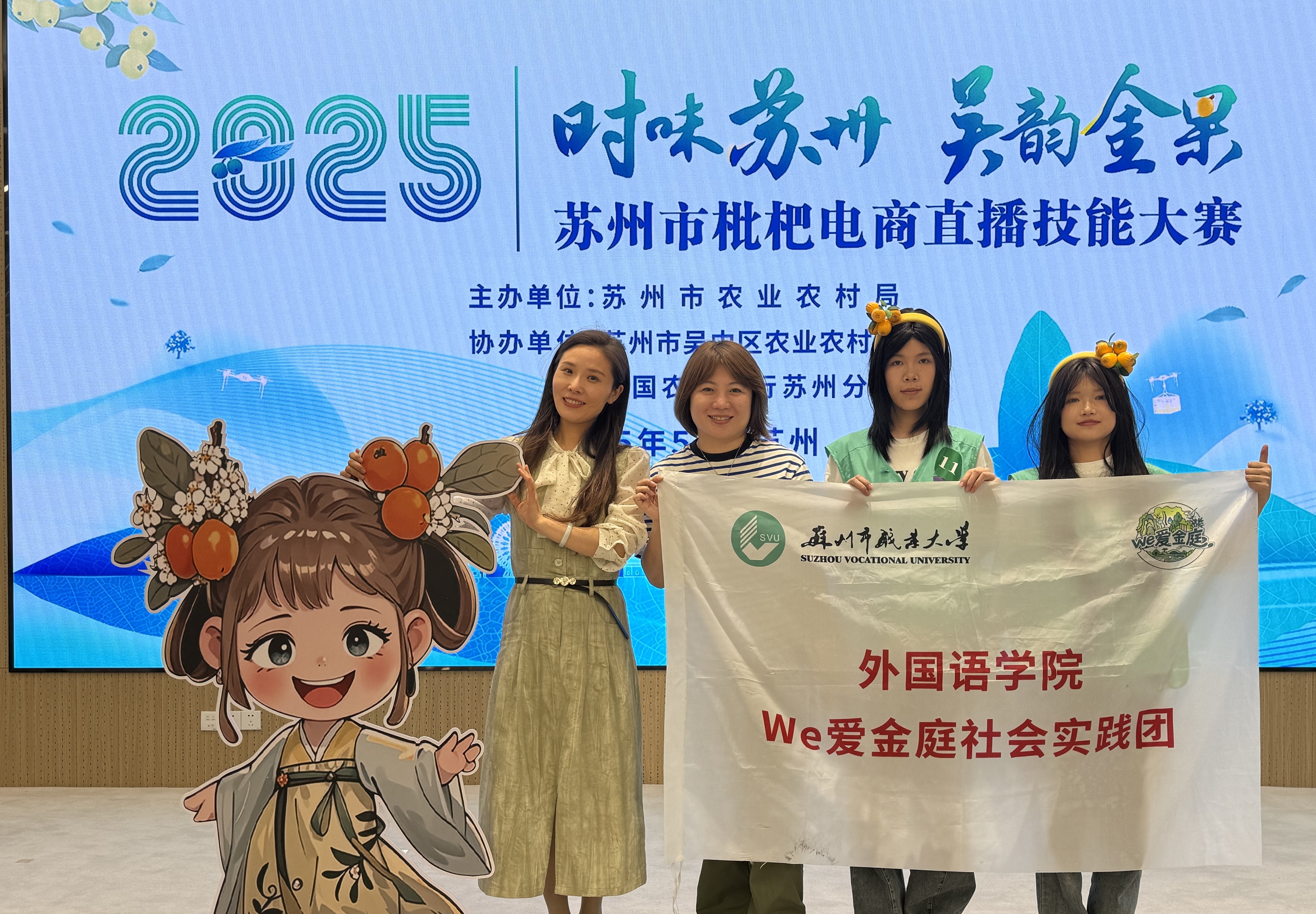 2025年5月,赵老师以《跨境电商运营实训》课程为依托,与常春藤农业专业合作社联合开展“谢方友”青种枇杷品牌推广项目,创新“项目教学+数字助农”模式,推动专业融合发展。师生们把课堂搬到果园、直播间和市集,用“项目教学”打通“产教融合”最后一公里,其间,组织学生参与“苏州市枇杷电商直播技能大赛”,以赛促学检验学习成果。备赛期间,赵老师全程陪伴,与学生们反复打磨PPT活动策划汇报,模拟直播场景。参赛团队创新融合双语解说、推广青种枇杷形象IP“金小杷”,获得评委专家的一致好评。