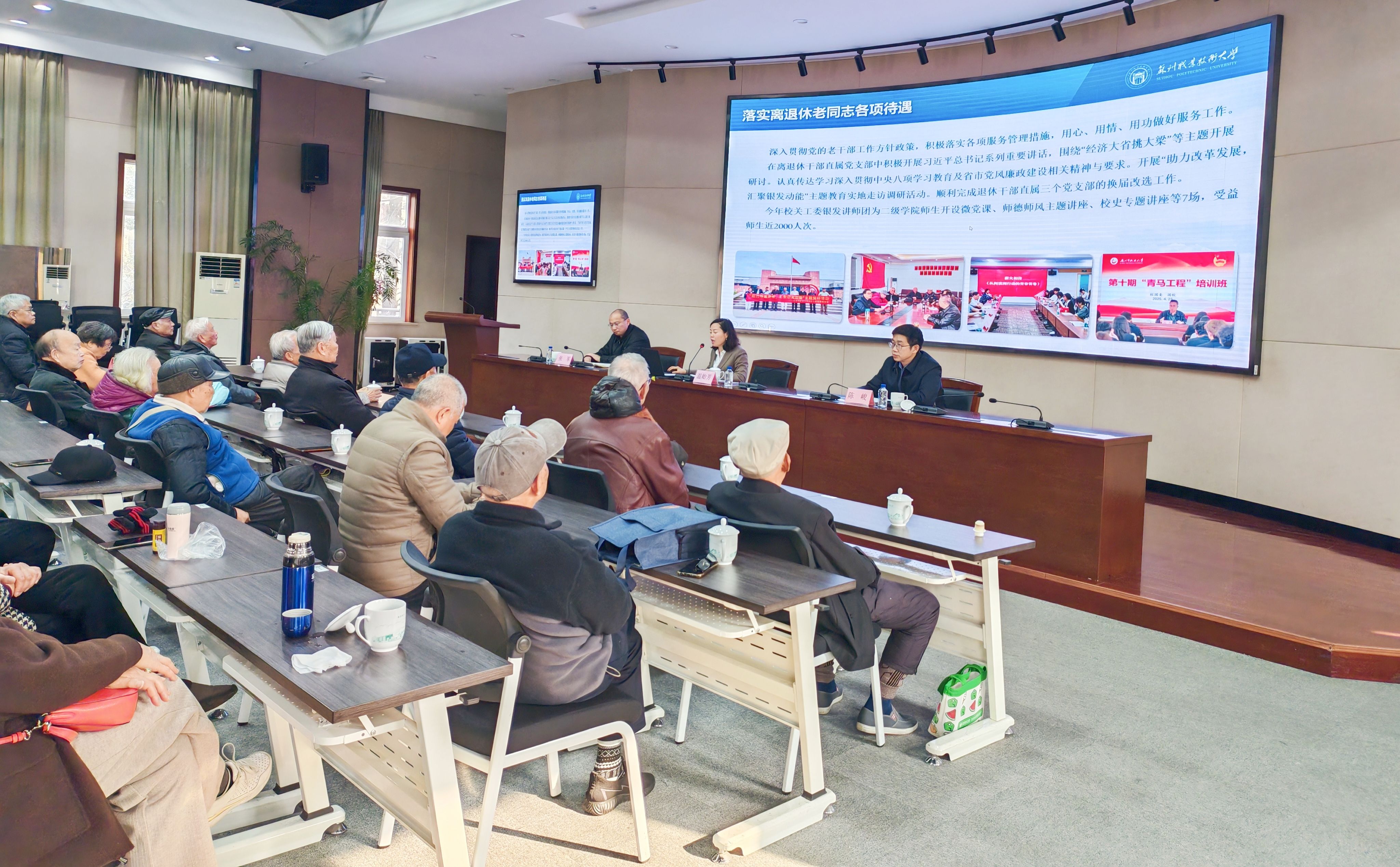 1月15日上午,2025年下半年离退休老干部学校情况通报会在干将路校区通和楼会议室举行。校党委书记温贻芳、校长陈峻、副校长张军出席通报会,学校离退休老领导及省级以上专家劳模、党委办公室、行政办公室、离退休干部处主要负责人参加会议。会议由陈峻主持。