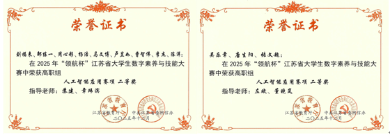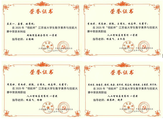 近日,由江苏省教育厅、中共江苏省委网信办联合主办的“领航杯”江苏省大学生数字素养与技能大赛成绩揭晓。我校斩获一等奖4项、二等奖2项。